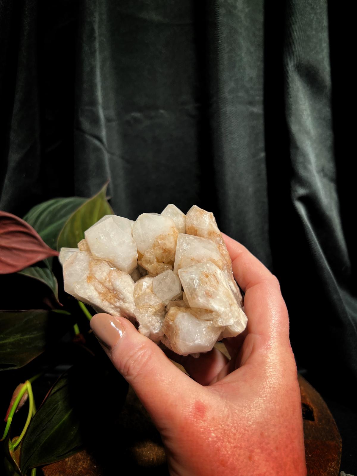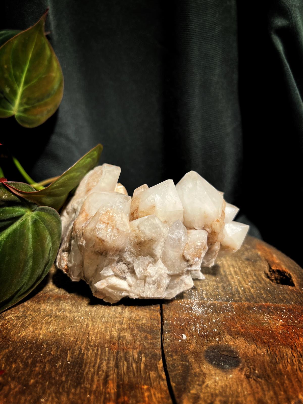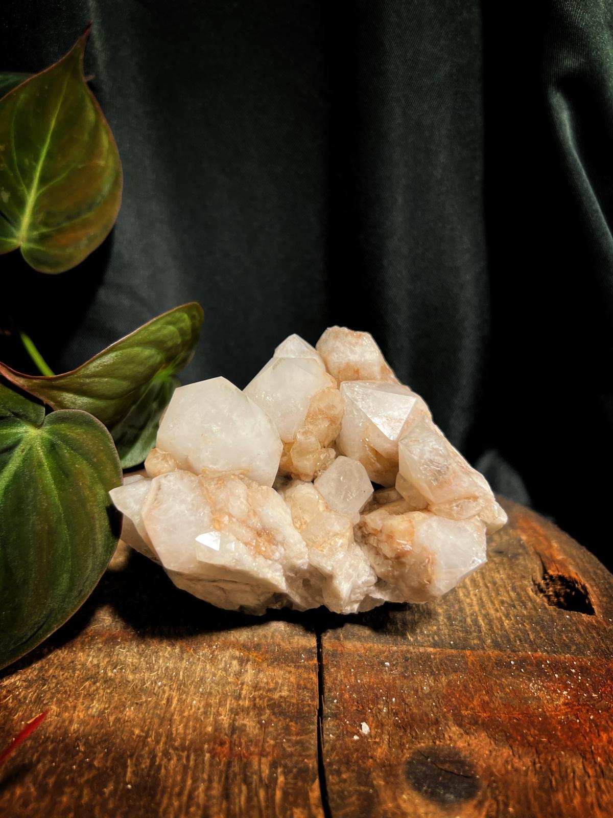Mooi cluster met oud roze tintje en grote kristallen