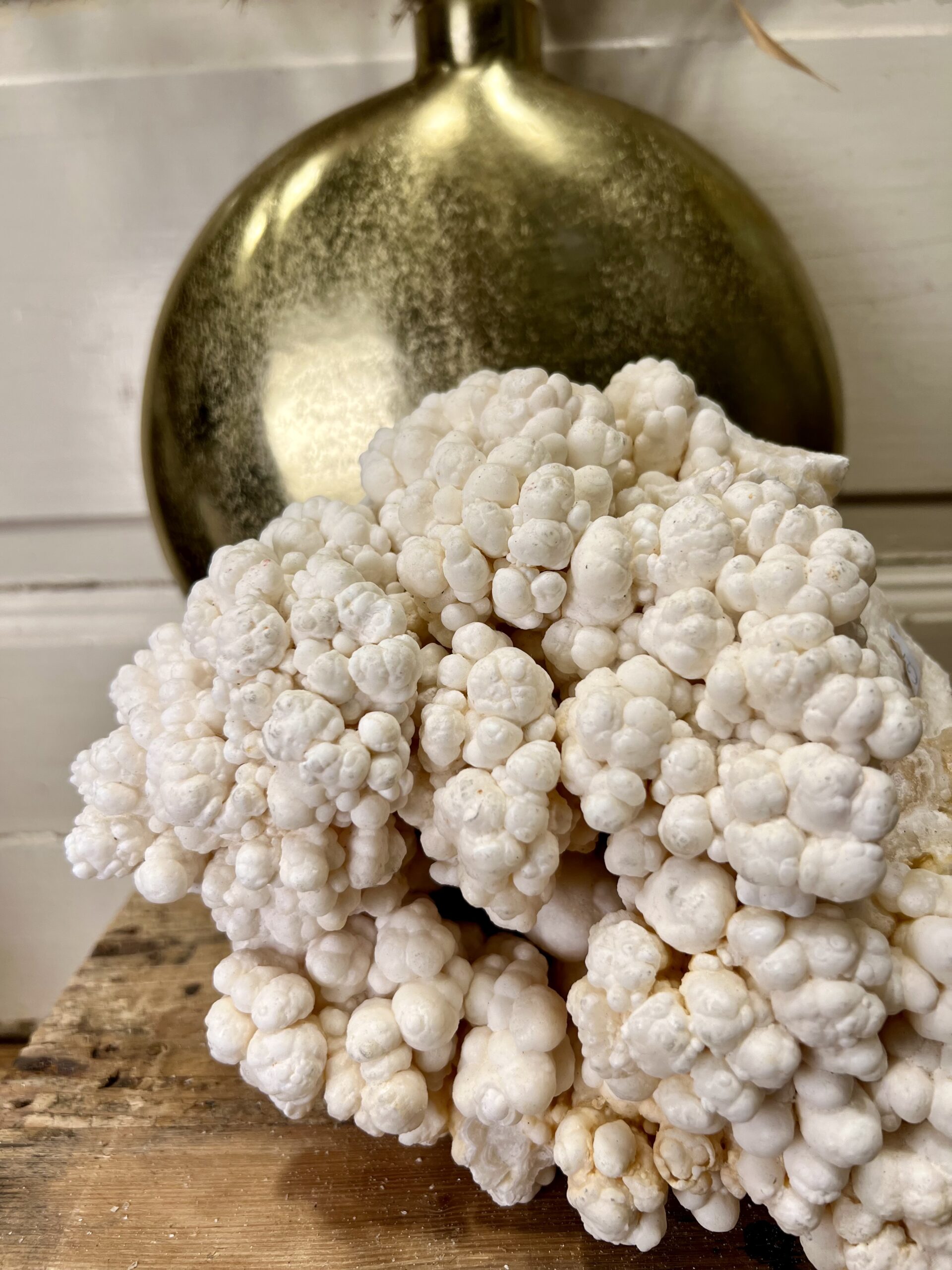 In Frankrijk wordt deze calciet “choux fleur” genoemd (bloemkoolcalciet). Maar hij staat ook bekend als cave calcite (grotcalciet) of grot aragoniet.