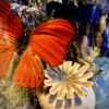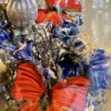Deze is gedecoreerd met 2 rode vlinders en een fleurig bloemstuk van diverse gedroogde soorten.