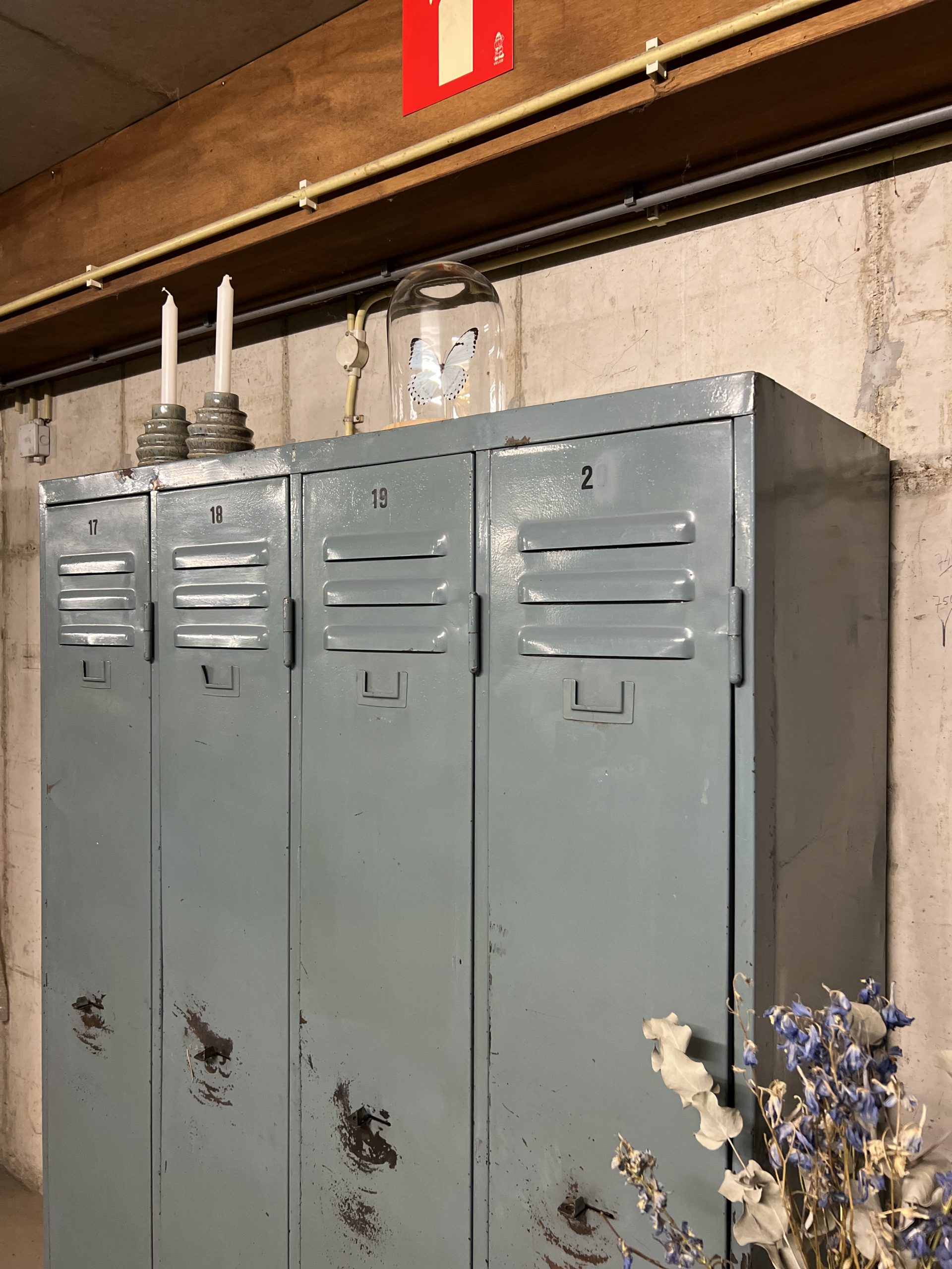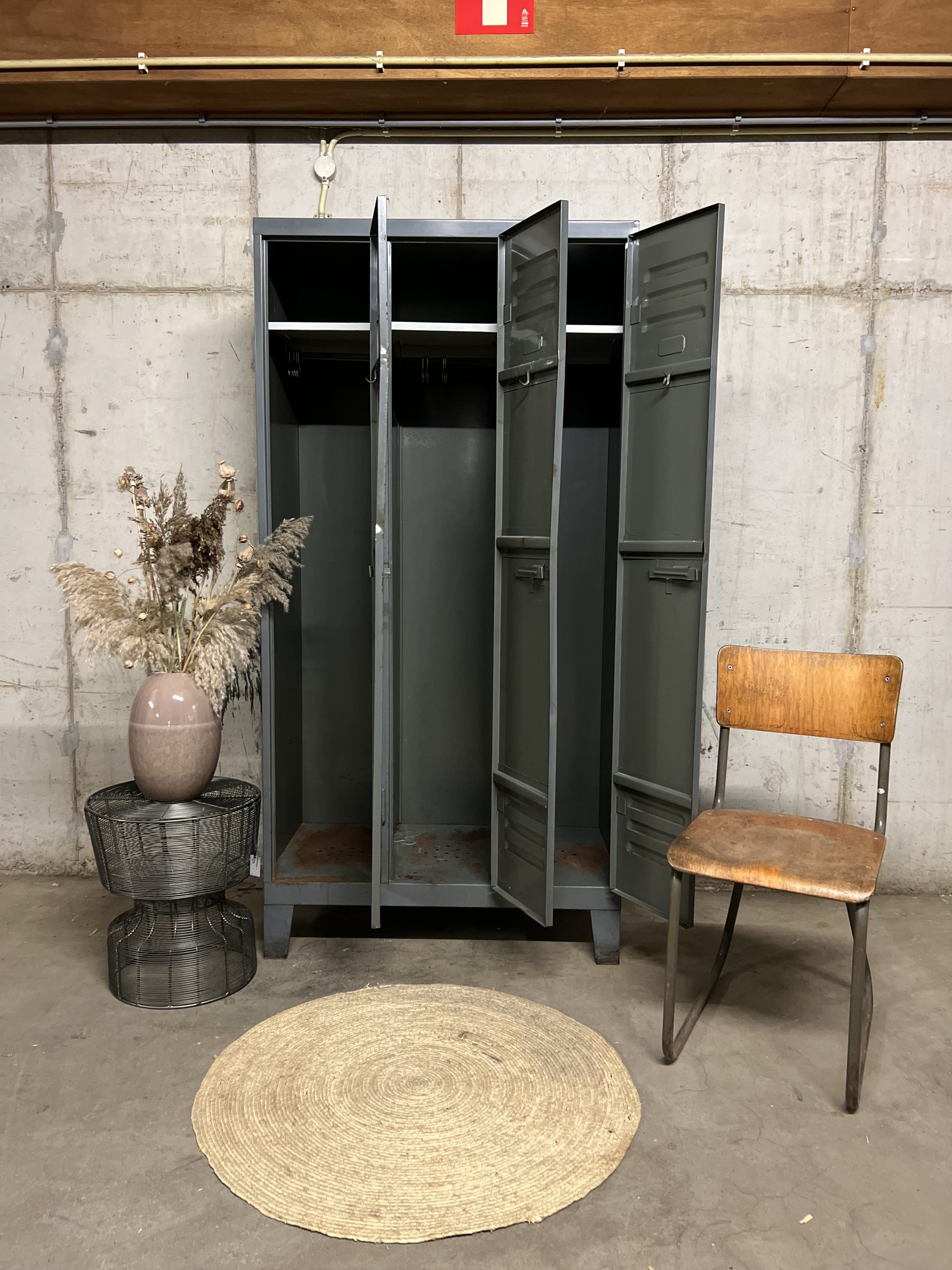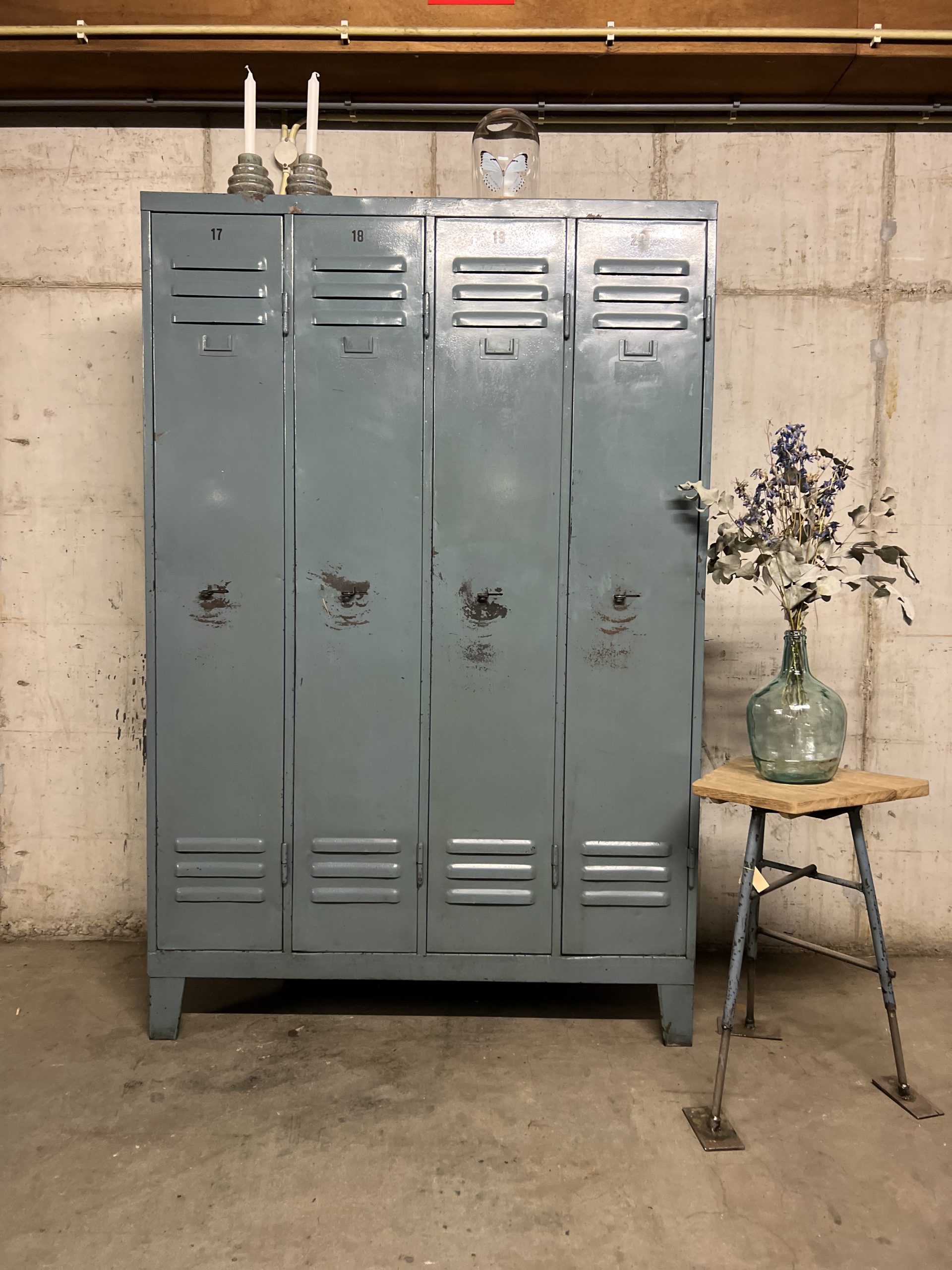 Metalen vintage lockerkast. Van deze zijn er meerdere op voorraad (foto is een voorbeeld)