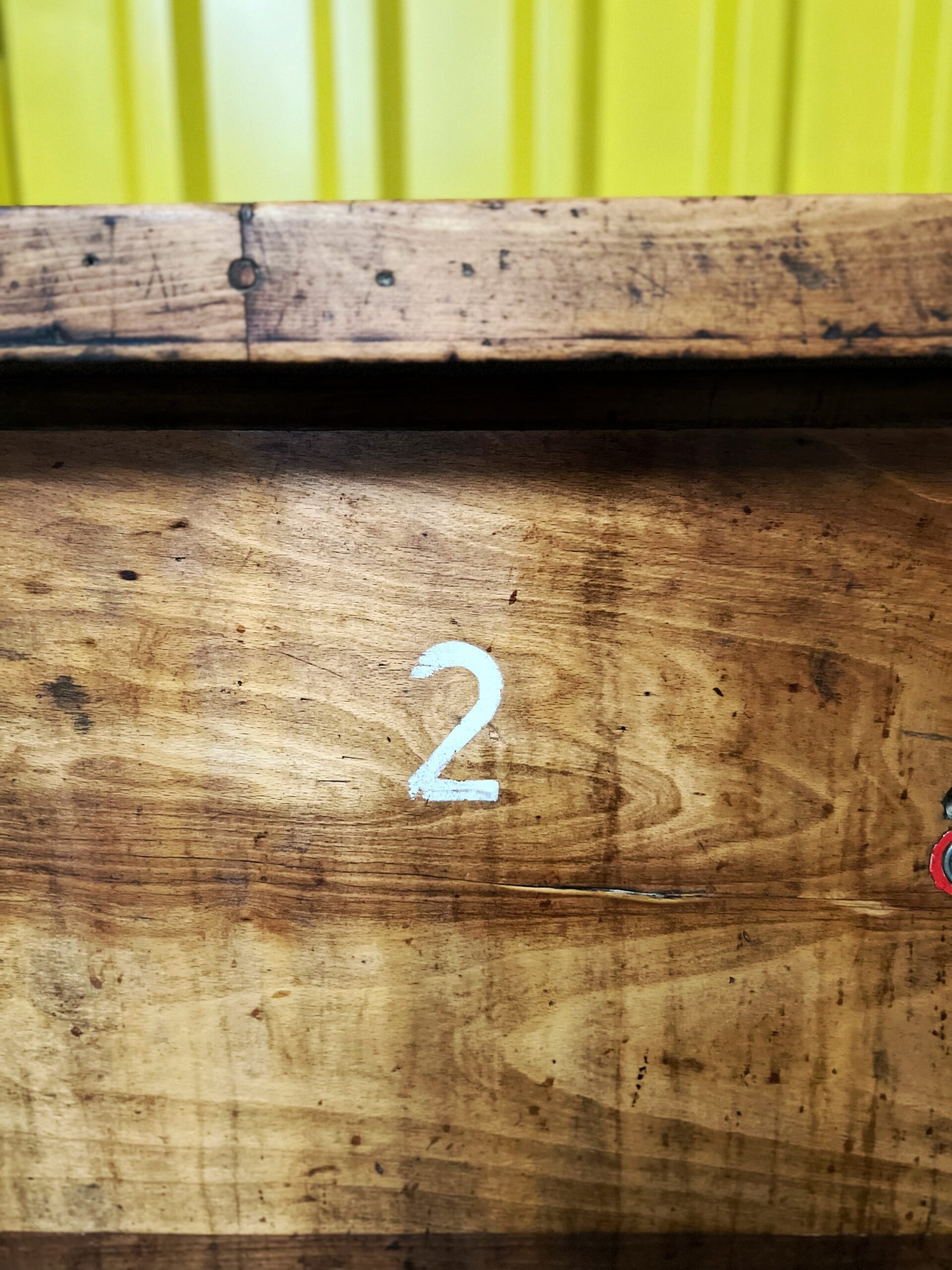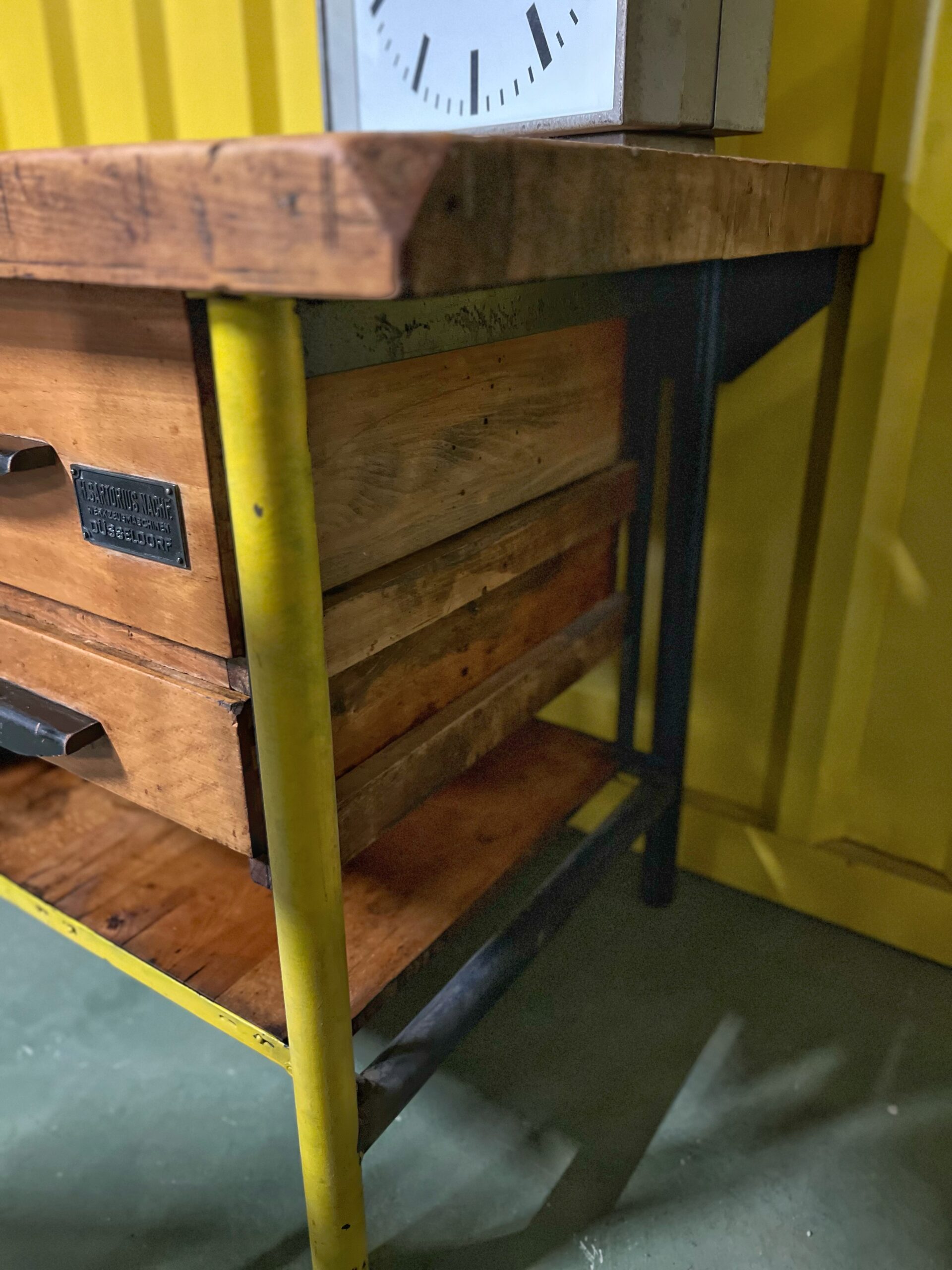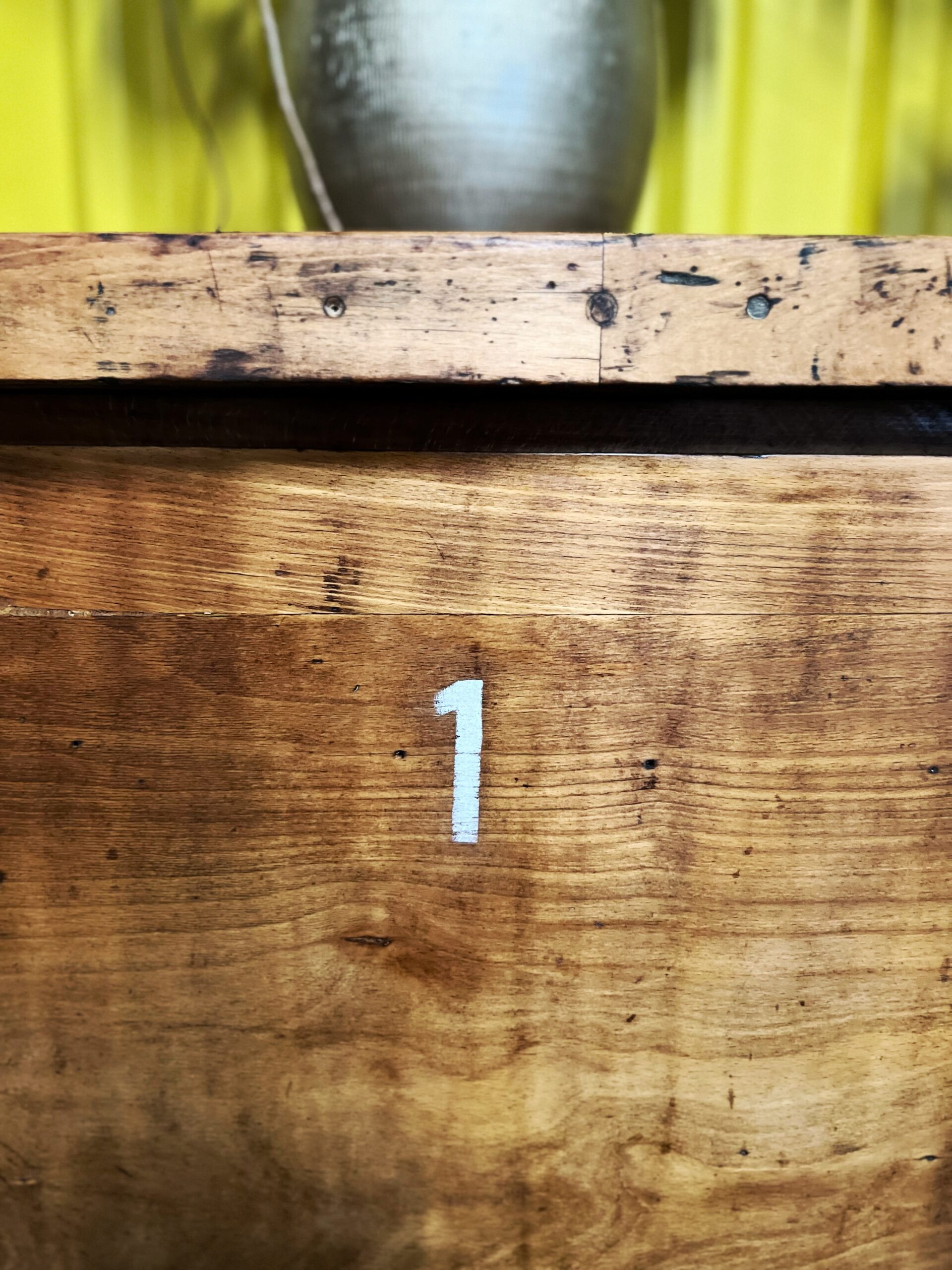 De voorste poten van deze kast zijn in de loop van de jaren ergens een keer geel overgeschilderd wat (als je het ons vraagt) wat extra’s toevoegt aan de vintage uitstraling.