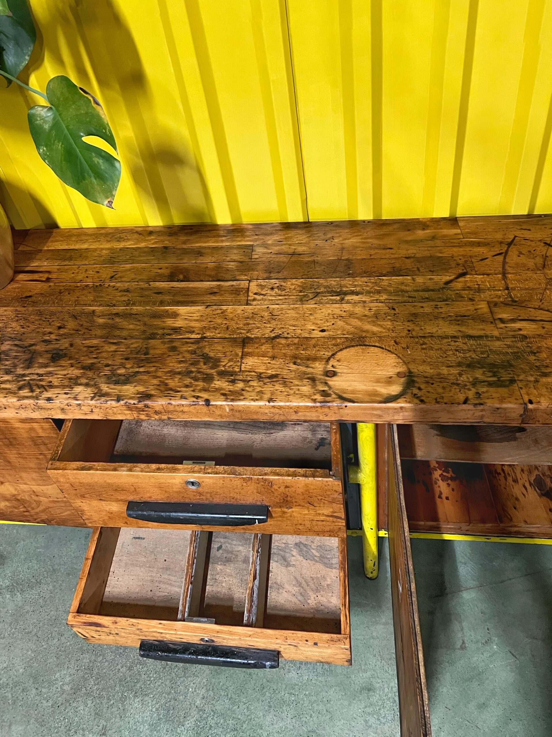 Deze oude werkbank heeft de tand des tijds goed doorstaan en is geschikt voor diverse doeleinden, mits jij de ruimte er voor hebt natuurlijk. Deze werkbank neemt namelijk wel wat ruimte in beslag!